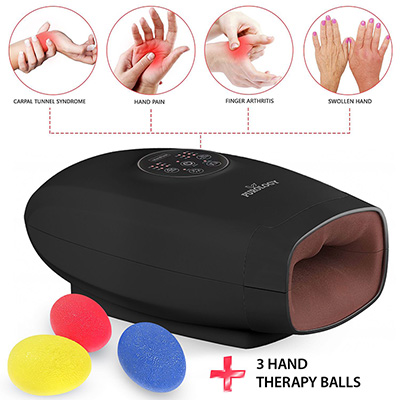 The Purology LXB hand massager, in elegant black, works by applying compression to multiple pressure points throughout your wrist, hand, fingers and palm to improve circulation and reduce pain. Ideal for individuals suffering from carpal tunnel syndrome, rheumatoid arthritis and joint pain. Continue to improve circulation and hand flexibility with the included hand therapy ball. Choose the density best for you and carry your preferred ball to exercise at your desk or on the road.